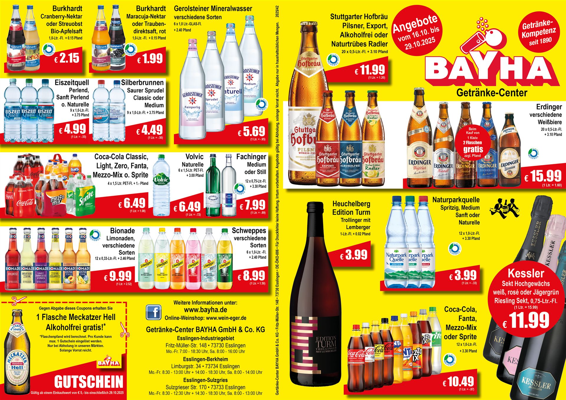Getränke-Center BAYHA GmbH & Co. KG | Fritz-Müller-Str. 148 | 73730 Esslingen | Telefon: 0711 93920710 | Fax: 0711 93920722 | E-Mail info@bayha.de | Öffnungszeiten
